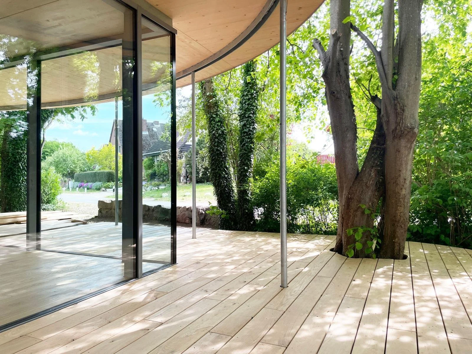 Aufgang mit Handgefertigtem Geländer und Pavillon Schriftzug